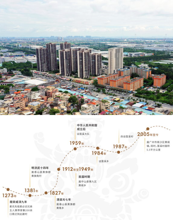 南宋,麦氏先祖麦必达兄弟五人惧祸及而携家眷南迁到此建村。曾用名“莲塘坊”,因建村时荷花盛放,后人觉得溪较塘意境好,易名“莲溪”意为溪水长流。该村南宋至清朝时期属香山县黄旗角管辖,民国时期属中山县第九区黄阁乡,新中国成立后,属珠江专区中山县,1959年属番禺县黄阁公社,2005年属广州市南沙区黄阁镇至今。