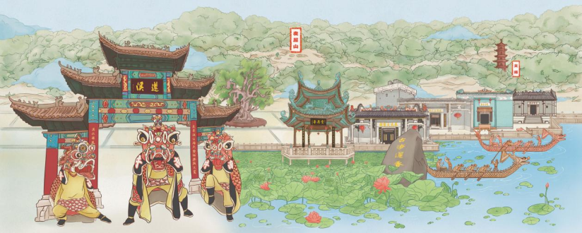 龙舟竞渡是莲溪村的文化名片之一。每年龙舟赛事凸显了居民的团结合作与竞技精神,其作为民俗亦得到有力传承。
