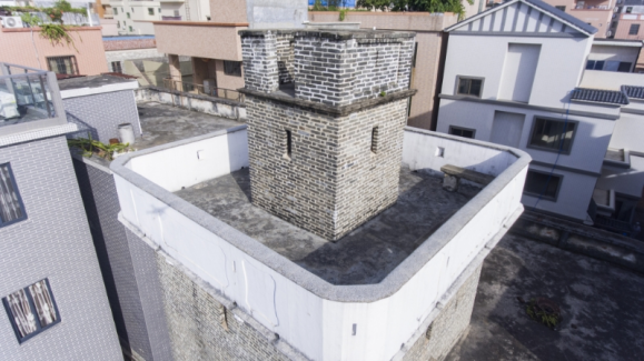 海头炮楼。始建于民国八年(1919年),青砖墙,花岗岩石脚,正面石脚高4米,炮楼上设有枪眼、炮眼、瞭望台等。炮楼顶飘出的女儿墙下方有“廖春造”3个黑字,整座炮楼建筑坚固、美观。