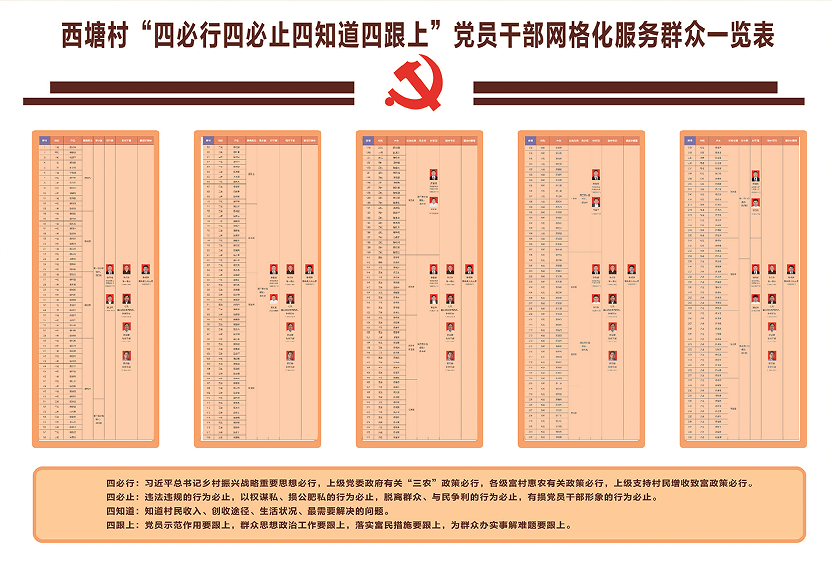 创建党员干部挂钩联系农户网格化管理大数据库,落实“四必行四必止四知道四跟上”。