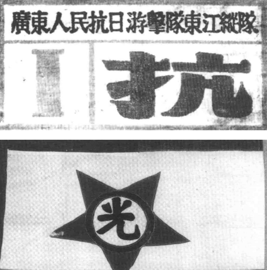 图为东江抗日根据地民兵使用的胸章和旗帜。
