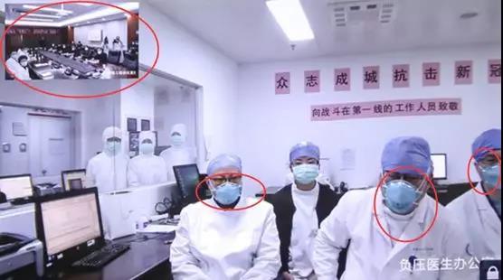 实际上,这张图是江苏无锡市委书记黄钦和当地疾控中心人员同一线医护人员开电话会议,拍摄时间1月28日,图片中戴一次性口罩的是疾控中心人员。另一张图片显示,电话会议另一端的医护人员佩戴的也是N95口罩。此外,近几日报道中,无锡街头的一些基层人员,也佩戴着与这些领导的口罩相似的口罩。