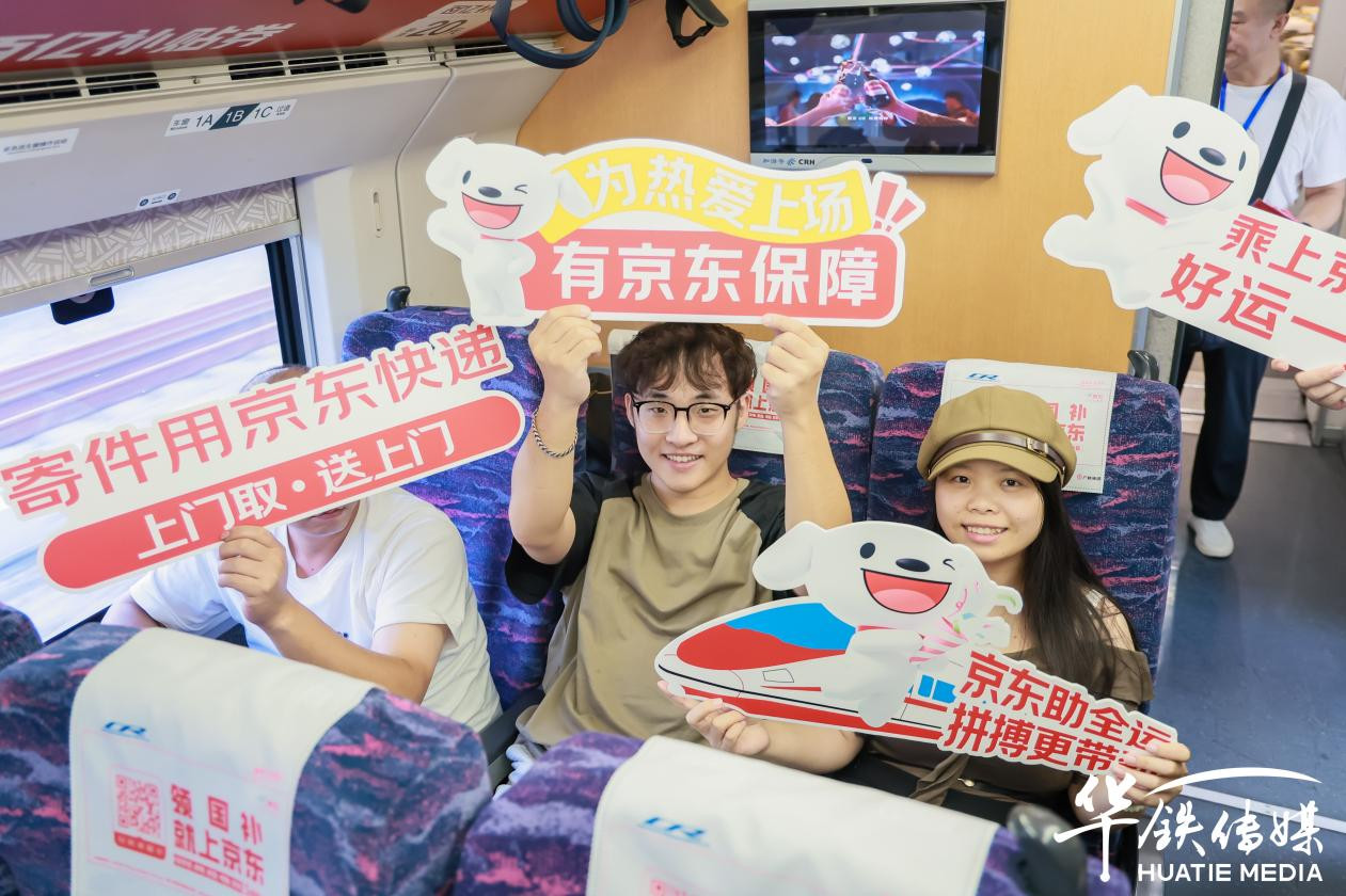 在京东迎接十五全运高铁冠名列车上,京东工作人员还与消费者展开了一场近距离的沟通互动,通过礼品派发等形式,为消费者送上关怀与温暖,让更多人深切感受到京东的品牌温度。