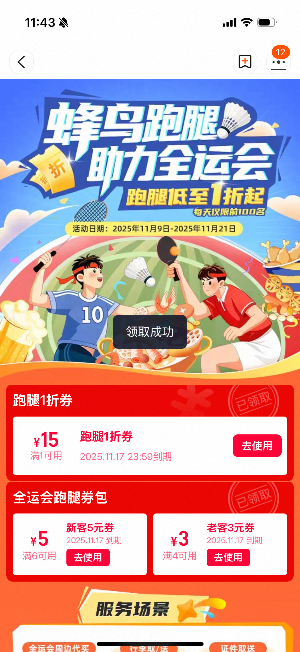 “全运会跑腿专属服务”上线,30分钟解燃眉之急