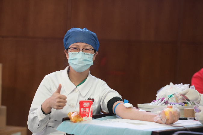 活动现场,参与献血的医务人员热情高涨,在工作人员的指导下有条不紊地进行登记、验血、献血等事项,同时医院工会为医务人员提供了葡萄糖、鸡蛋、牛奶等营养补给和服务保障,确保献血活动有序进行。