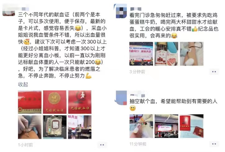 在献血的过程中,不少医务人员还拿出手机拍下照片并发布到朋友圈。他们说:“发个朋友圈,让我的朋友也看看,号召他们也来参与无偿献血。”