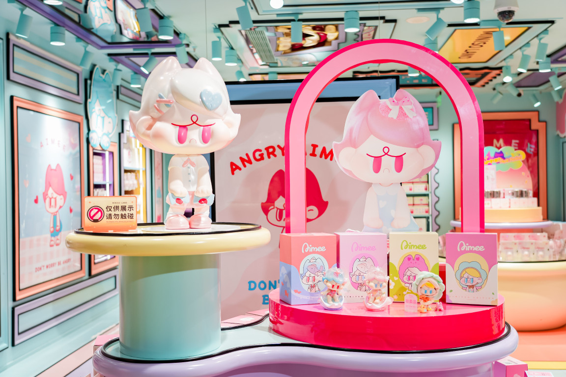 名创优品首个潮玩艺术家街区由原创艺术家IP“气宝AngryAimee”率先入驻。气宝以「Angry Love」为主题,鼓励年轻人真实表达情绪,打造具有情感共鸣的沉浸式内容场景。