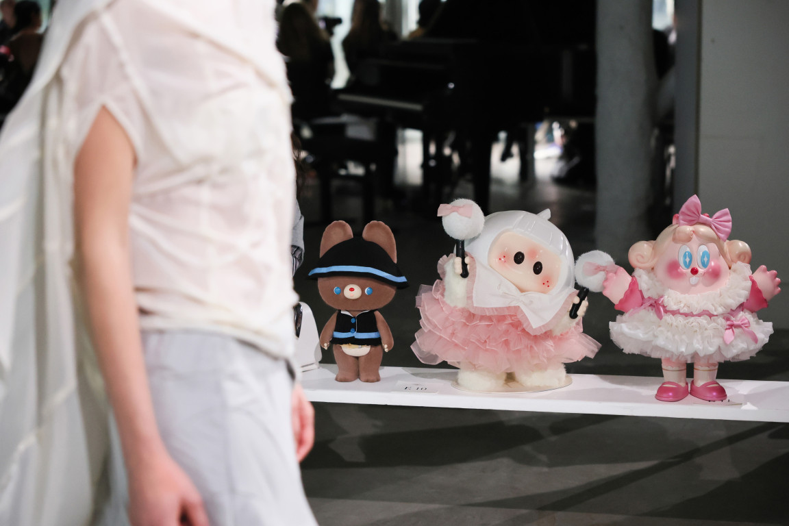 今年10月初,名创优品携旗下原创潮玩艺术家IP“萝卜街”“右右酱”与“KUMARU”身着Reverie by Caroline Hú联名娃衣,惊艳亮相Reverie by Caroline Hú 2026春夏系列大秀现场,实现中国搪胶潮玩在国际四大时装周的首秀,也成为其“带领100个中国IP走向世界”战略的重要一步。