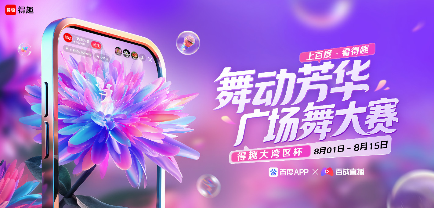 近日,由百度APP联合百战直播主办的“舞动芳华·得趣大湾区杯广场舞大赛”在广州正式启动。本次大赛创新采用“赛事+社交+知识”的三维模式,为大湾区中老年群体搭建专属的“明星舞台”。截至目前,共有来自大湾区11个城市的300余支队伍、超3000名40-80岁的舞者报名参赛。