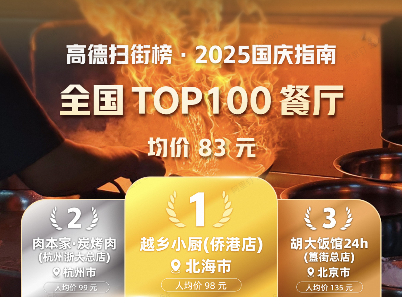 9月29日,高德扫街榜发布《国庆指南:全国TOP100餐厅》。这是首个全国TOP100餐厅榜单,成为这次长假最重要的美食指南。