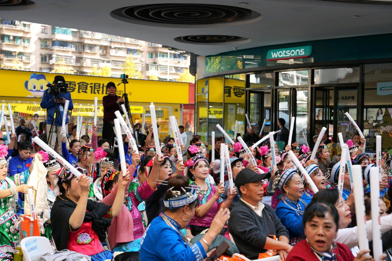 11月16日的决赛现场始终气氛高涨、热情不减。赛前,观众手持助威道具有序入场,参赛队伍纷纷在合影区驻足打卡,一张张笑脸既藏着对舞台的期待,也透着团队协作的默契。随着现场灯光渐亮,以“火塘、彝歌、月琴、披风、踏歌”为核心的五大篇章依次展开,将非遗元素与舞蹈表演巧妙融合,让观众在欣赏舞姿的同时,沉浸式感受黔地文化的深厚底蕴。