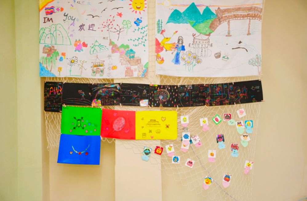2025年秋季学期起,融合本地特色的美育课程在四所学校全面开展。孩子们通过绘画、手工、音乐等形式自由表达;美育教室也同时成为教研、阅读与展示的多元空间,真正实现“一室多用、功能融合”。