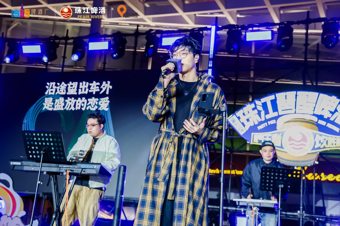 分会场的Busking市集则藏着本土温情,毕士倾诉等本土音乐人驻场表演,街头演艺与观众近距离互动,营造出“家门口的音乐节”氛围。从傍晚的轻松互动到夜间的热力狂欢,珠江琶醍啤酒节以全时段演出矩阵,让珠江畔的欢乐从不打烊。