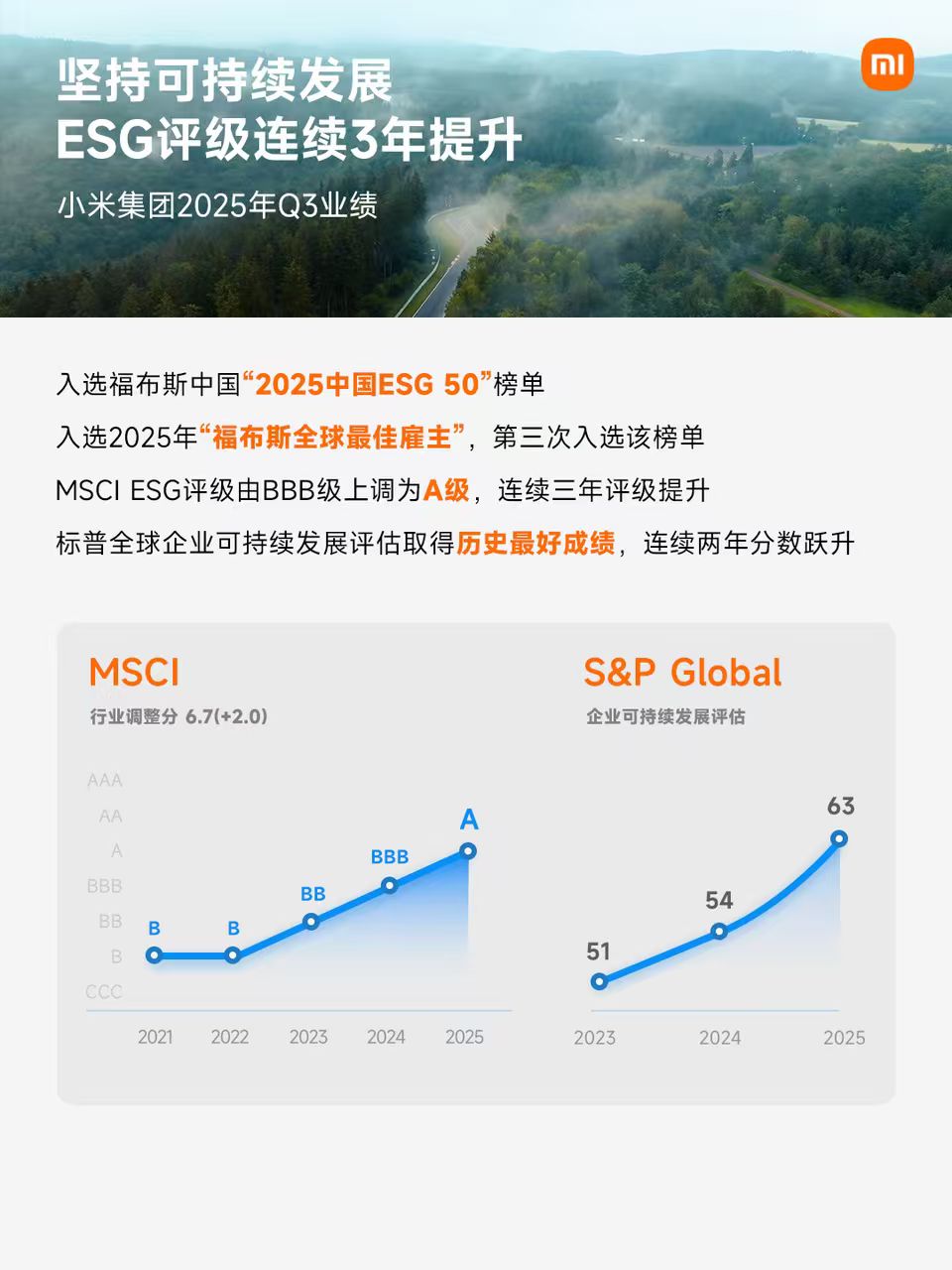 高盛、摩根士丹利等国际头部机构发布多份研报,持续看好小米的长期发展与成长性。高盛认为,从长远来看,小米稳健的资产负债表、强大的生态整合能力以及因规模和深度参与电动汽车供应链而产生的成本优势,将提升其在电动汽车领域的竞争力和吸引力。摩根士丹利认为,随着“智能手机+电动汽车+AIoT”协同效应逐步显现,小米的AIoT业务具有强劲的长期增长潜力。