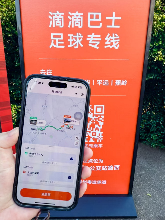 为了方便用户购票,在滴滴出行App或小程序内,足球专线上新增了“足球专线”标签,或者“曾宪梓体育馆专线”的标识。广东省足球超级联赛赛事期间,乘坐滴滴巴士足球专线还可以享受8折专属优惠。本次足球专线在梅县文体中心出口特别新增了站点巴士上、下车站点,比赛结束后,在梅县文体中心外的站点扫码乘车,同样也可以享受球迷专属福利。