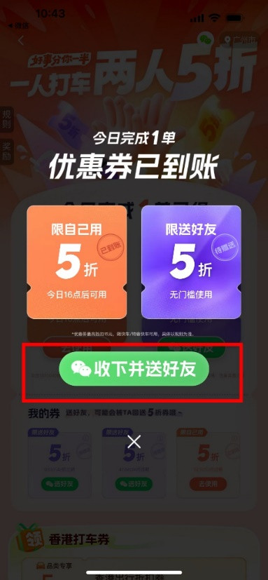 此外,滴滴出行网约车在夏季还推出“一人打车,两人5折”等多重优惠活动。用户通过滴滴出行App或小程序进入“打一次车,得两张5折券”活动页面,每日领取任务后,完成一单指定车型的订单,可得两张5折券,每张券最高可省15元车费。一张限本人当天16点后可用,一张限指定时间内赠送亲友可用,活动覆盖广东省内17个城市,不同城市优惠策略不同,请以滴滴出行App或小程序内展示为准。