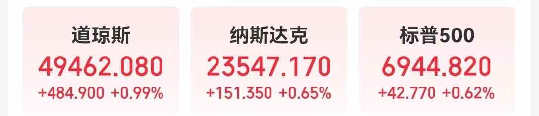 当地时间1月6日,美股三大指数集体收涨,道指涨0.99%,纳指涨0.65%,标普500指数涨0.62%。其中,道指、标普500指数均创历史收盘新高。