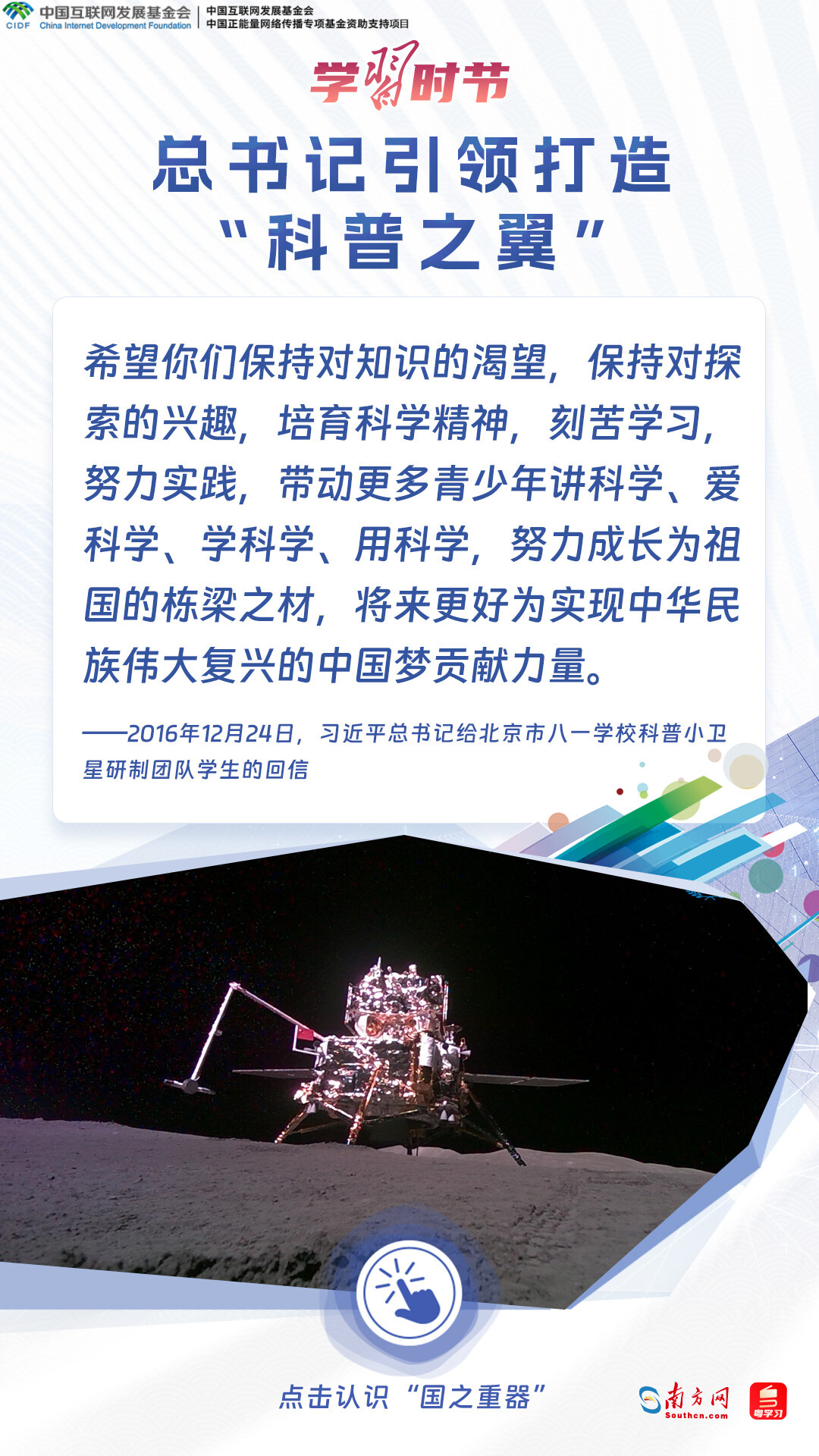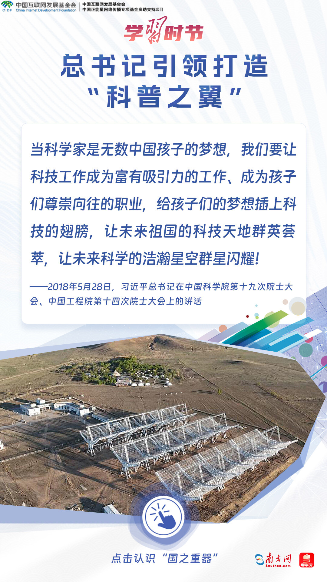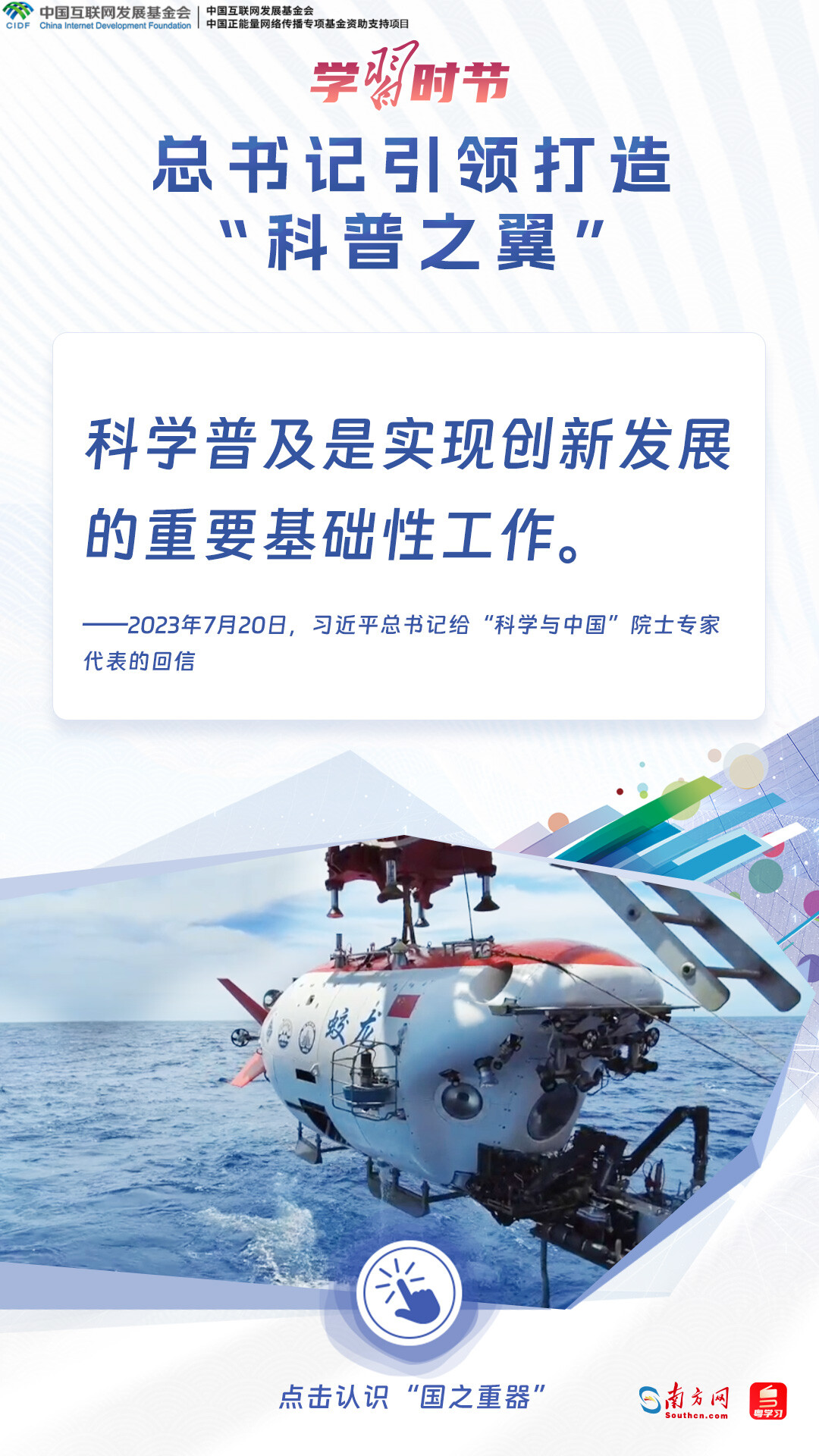全国科普日到来之际,让我们通过一组互动海报,学习领会习近平总书记关于科学普及工作的重要论述,在与“国之重器”的“亲密接触”中感受科技创新的魅力。