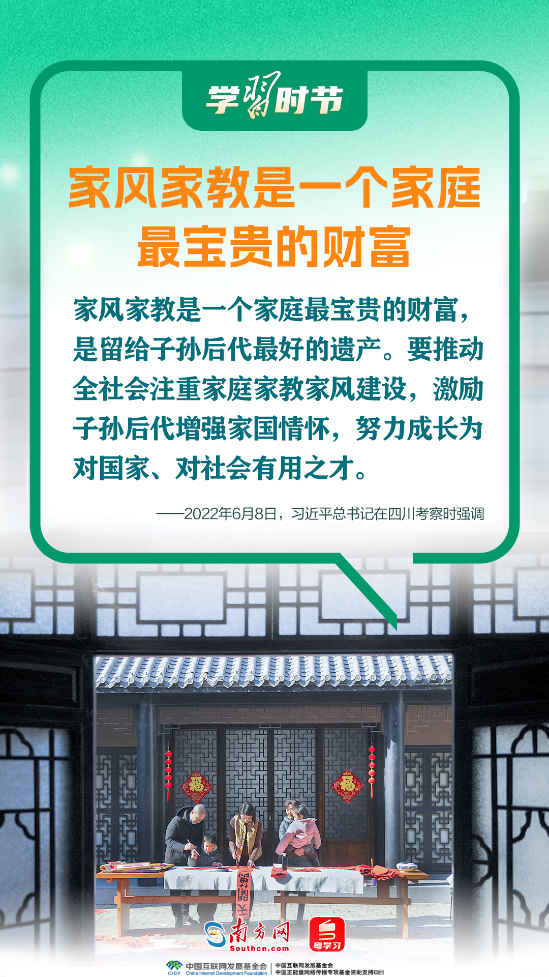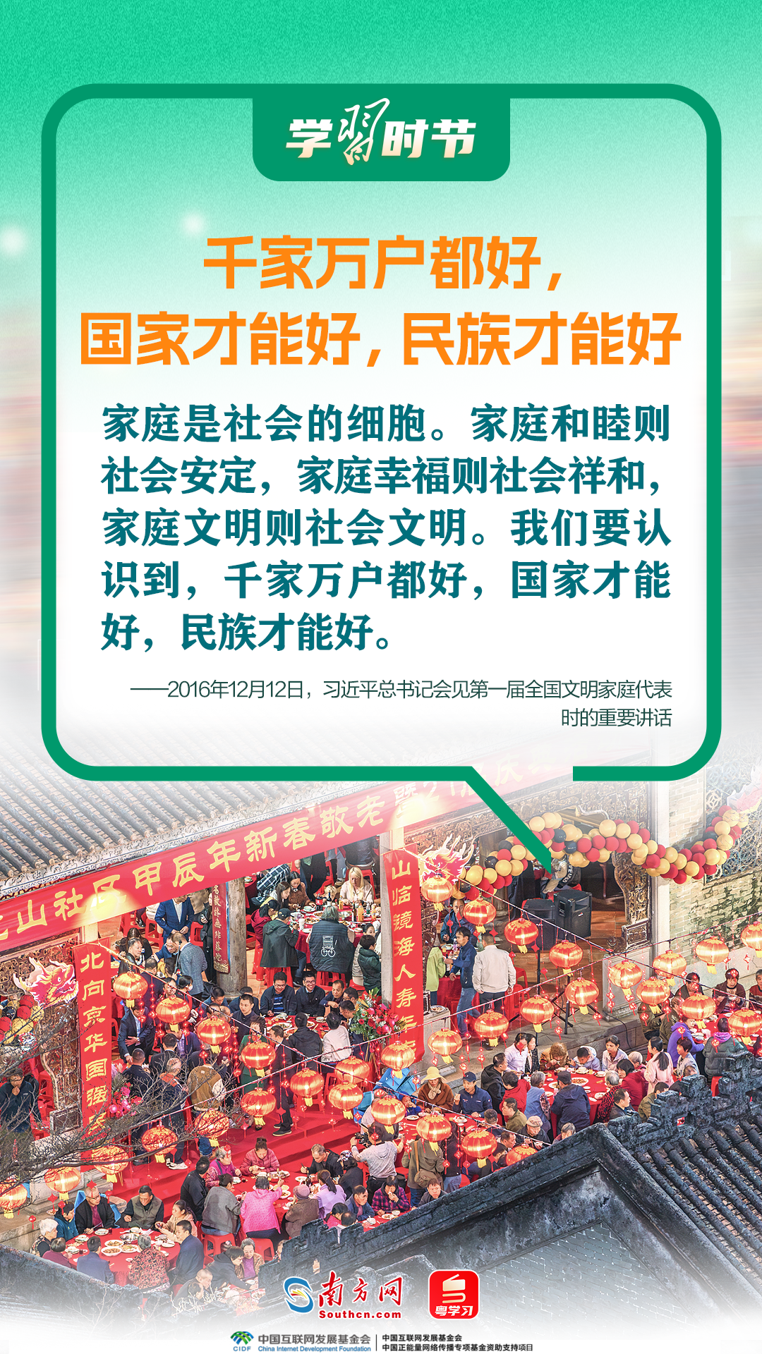 家庭不只是人们身体的住处,更是人们心灵的归宿。习近平总书记一向高度重视家庭文明建设,他强调,广大家庭都要弘扬优良家风,以千千万万家庭的好家风支撑起全社会的好风气。