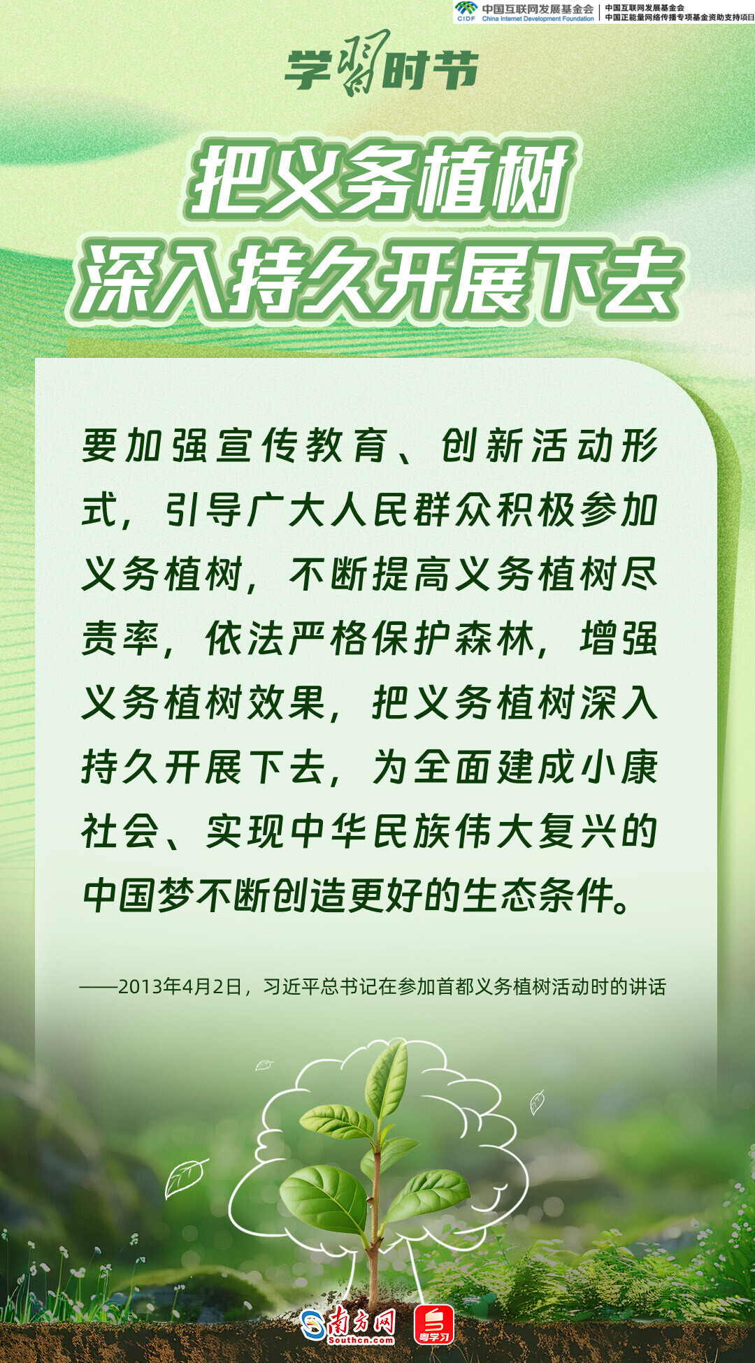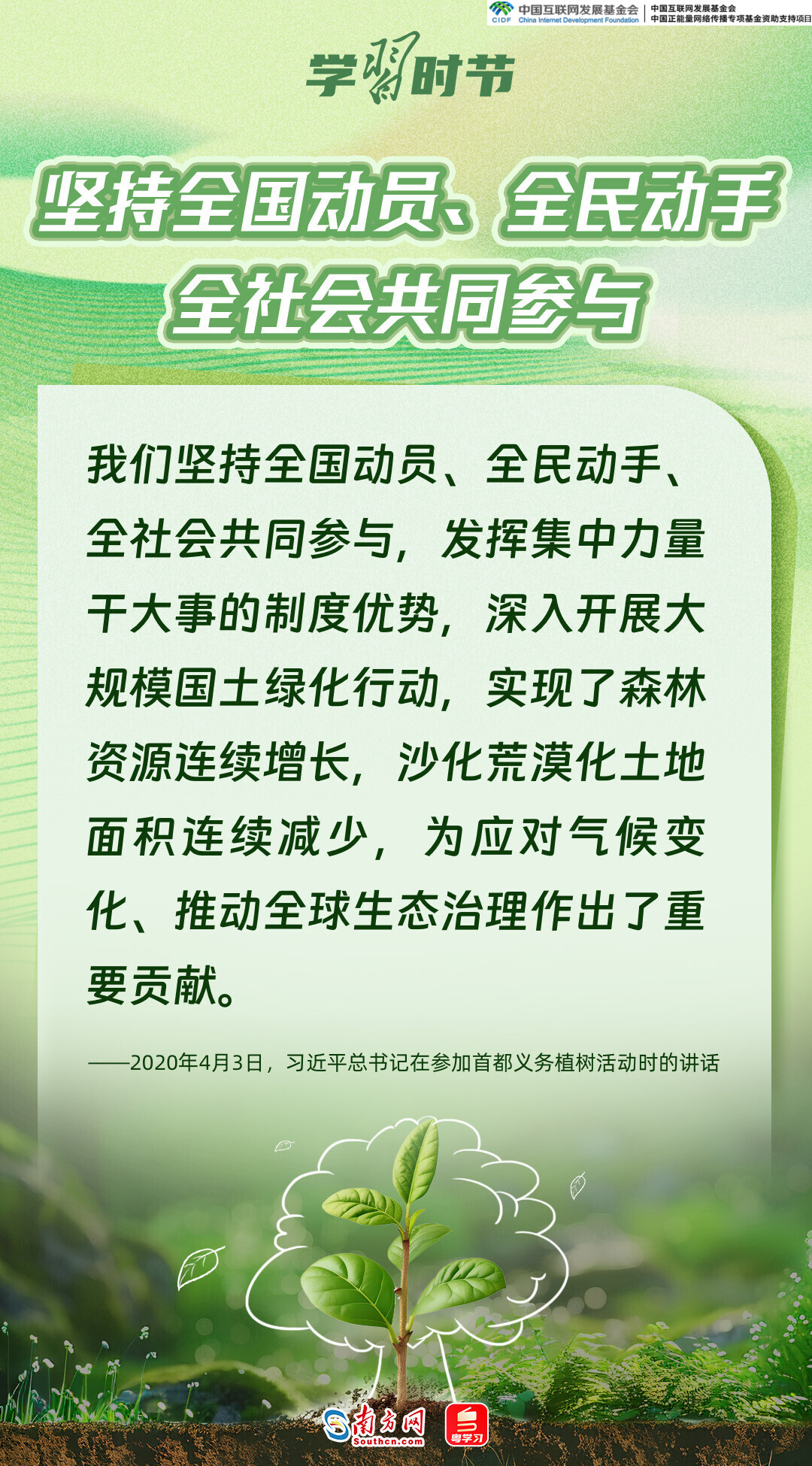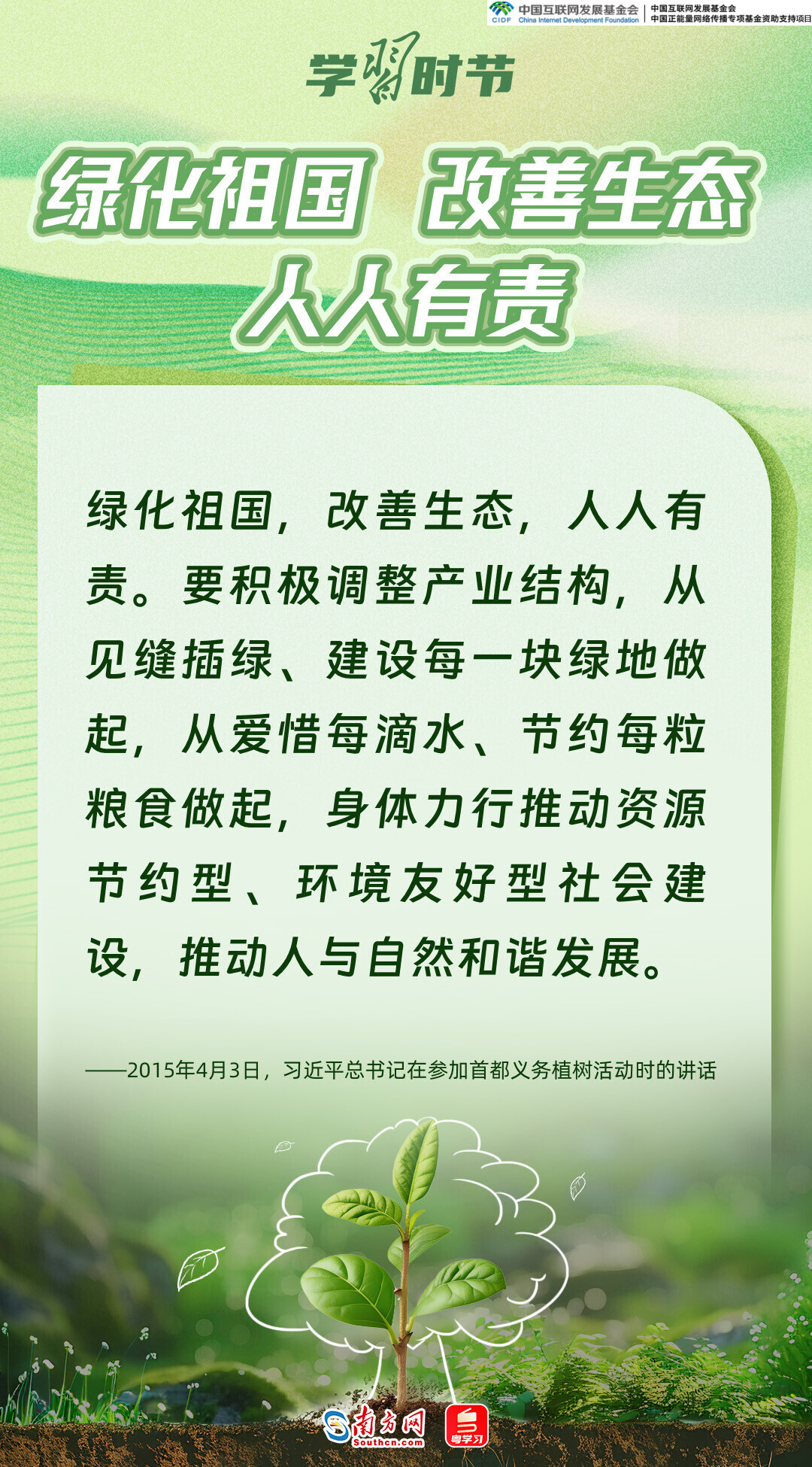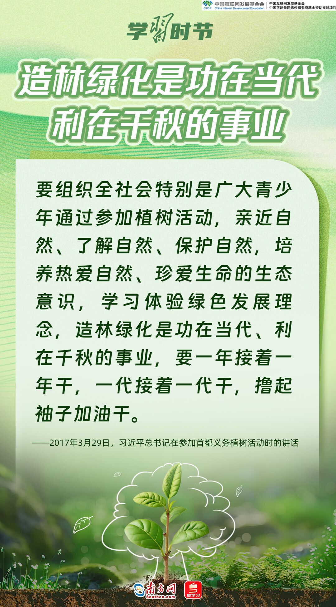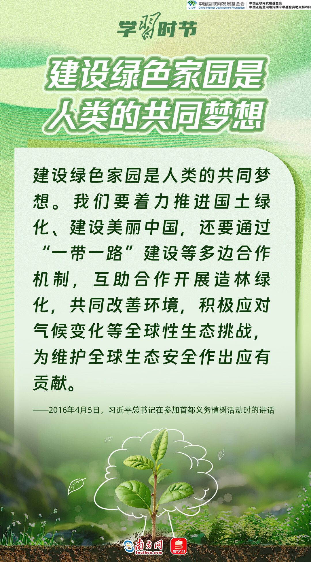 生态文明建设是关系中华民族永续发展的根本大计,而绿色,正是加快生态文明建设、推动中国高质量发展的底色和重要标志。党的十八大以来,习近平总书记每年春天都会参加首都义务植树活动,率先垂范、身体力行,大力倡导人人爱绿植绿护绿的文明风尚,推动美丽中国建设转化为人民自觉的行动,共同谱写人与自然和谐共生的中国式现代化新篇章。又是一年植树节,让我们一同感悟习近平总书记的“绿色”情怀。