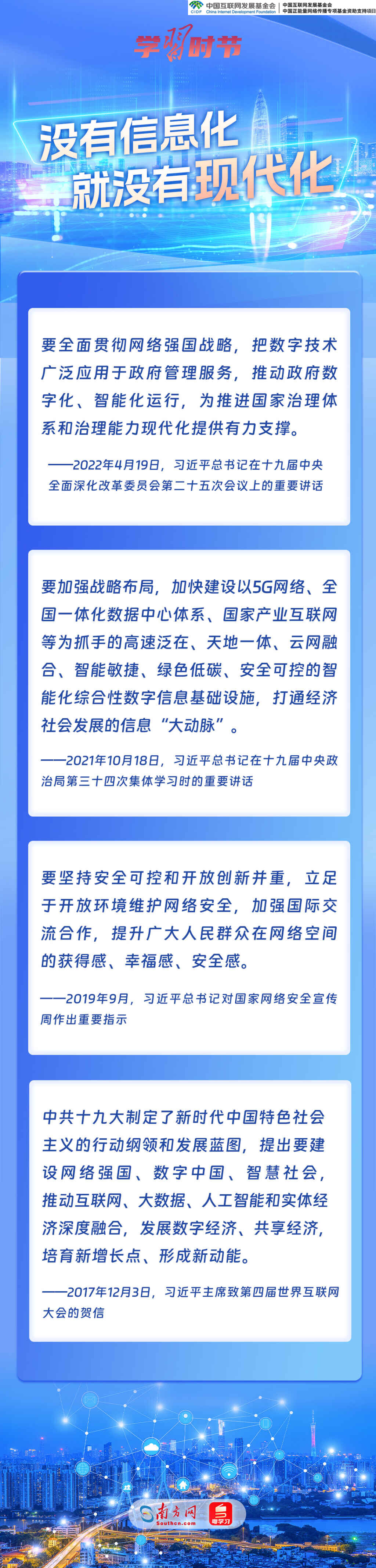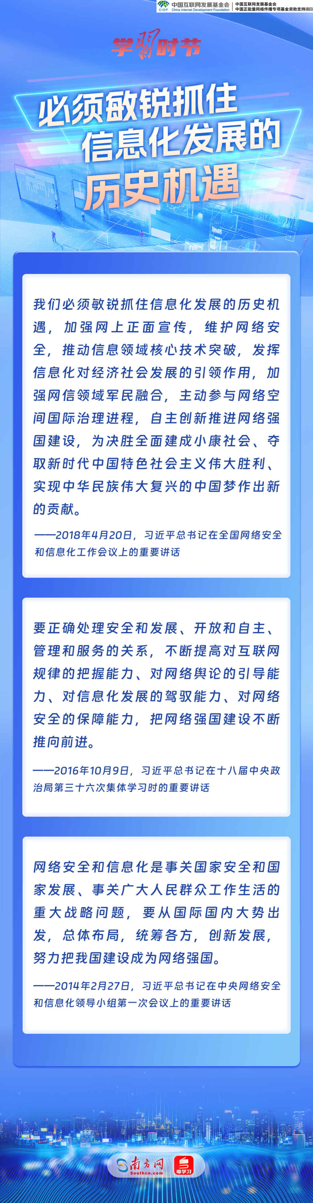 党的十八大以来,习近平总书记从信息化发展大势和国内国际大局出发,就网络安全和信息化工作提出一系列具有开创性意义的新理念新思想新战略,形成了习近平总书记关于网络强国的重要思想。其中,有不少生动形象的表述,深入人心,发人深省,让我们一起学习。