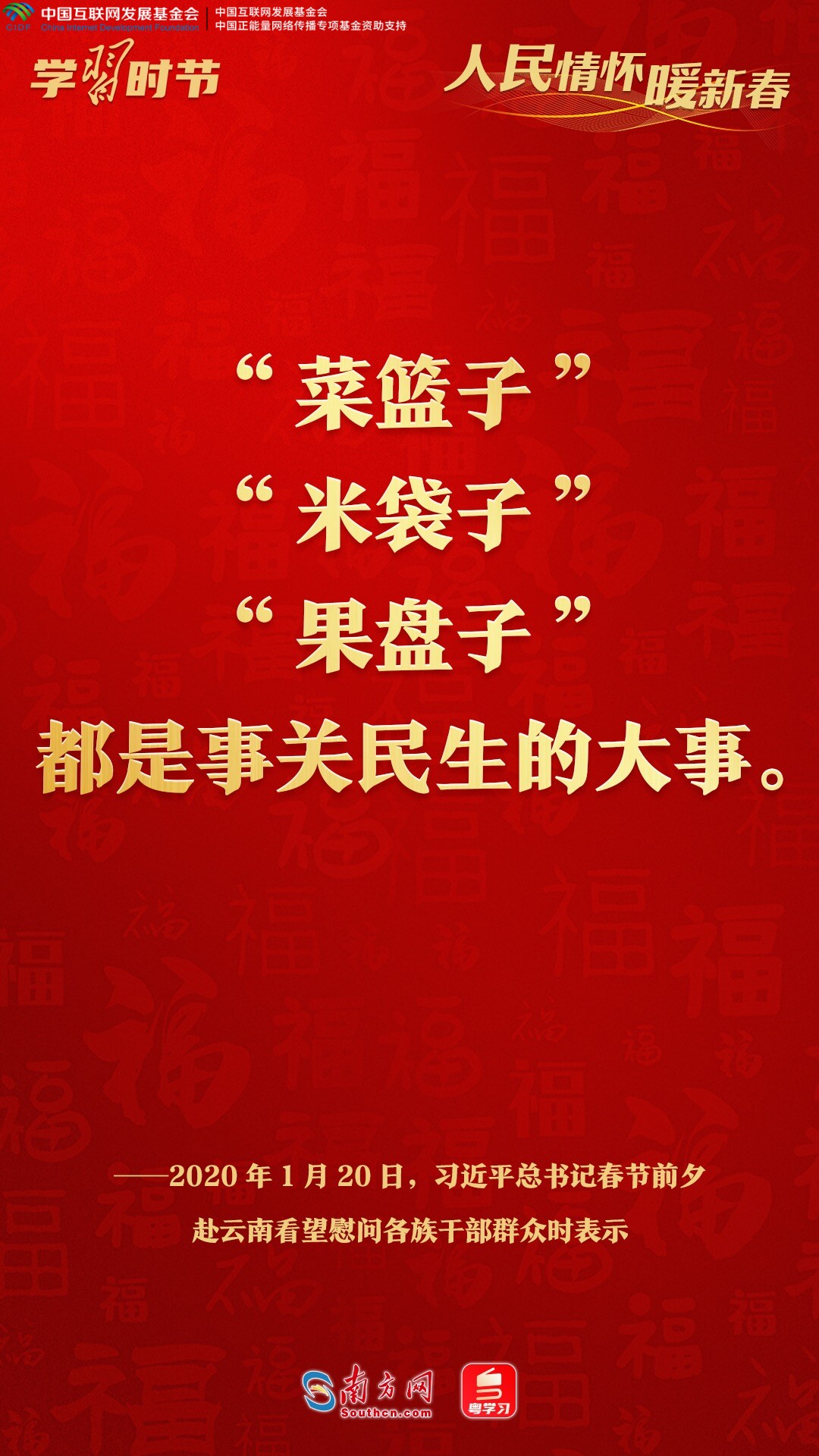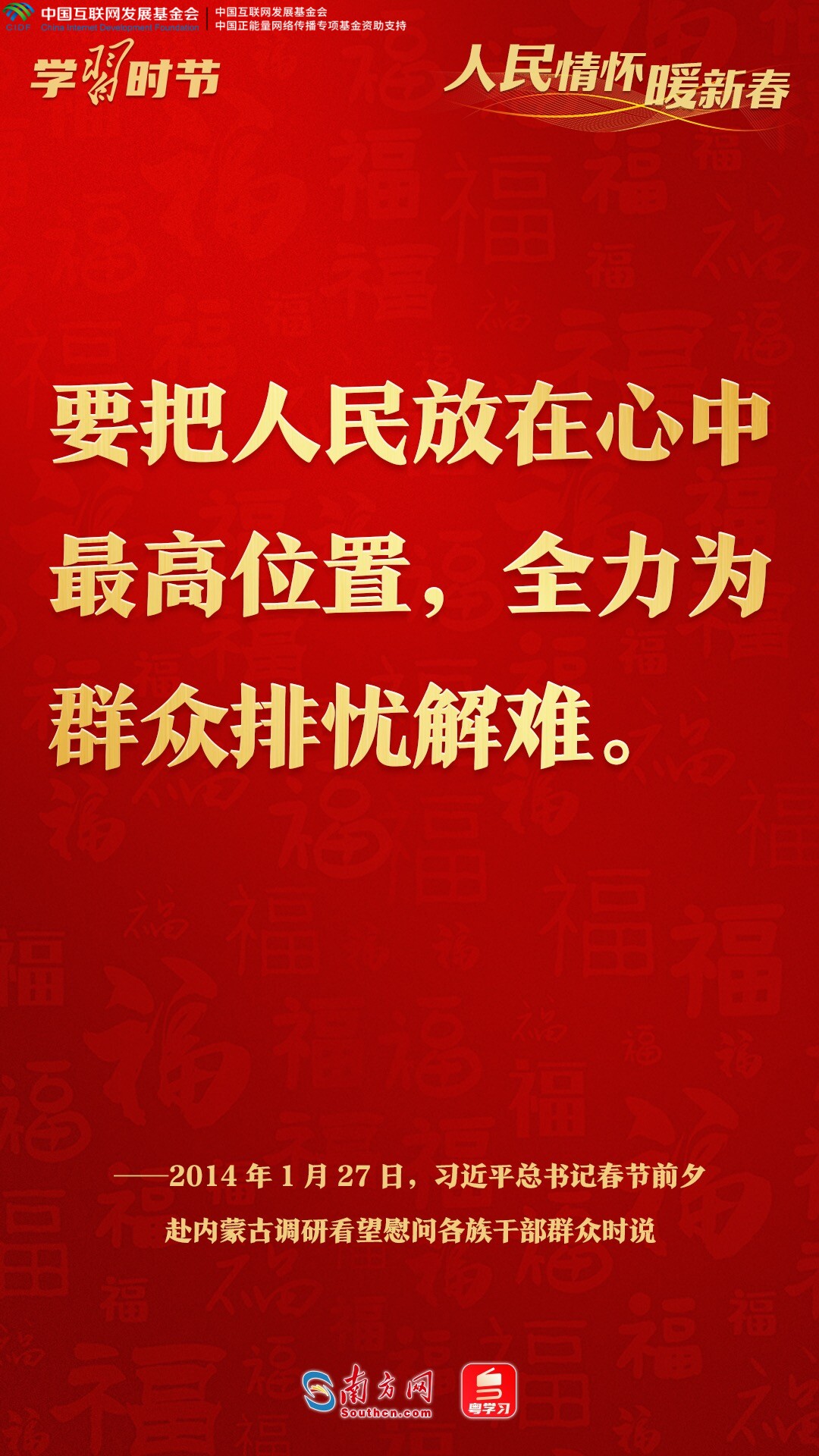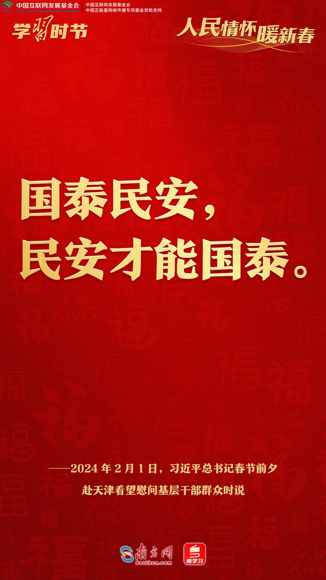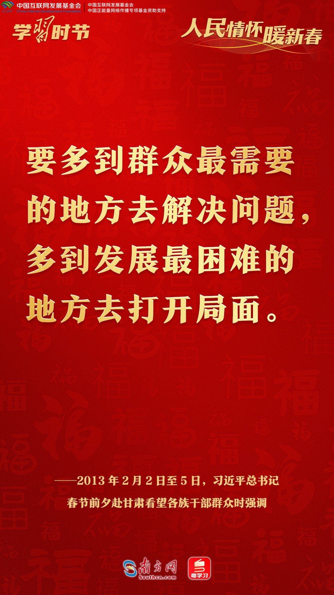 让我们循着习近平总书记新春看望慰问的足迹,从一句句温暖真挚的问候、一声声情深意长的叮嘱中,感悟人民领袖深厚的人民情怀。