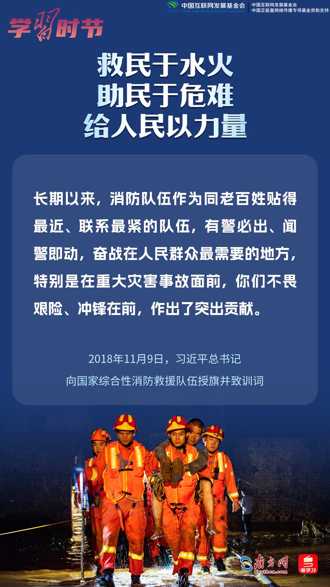 今年11月9日是习近平总书记为国家综合性消防救援队伍授旗并致训词五周年,也是全国消防日。让我们一起重温总书记重要训词,感受总书记对百姓安危的深情牵挂和对“火焰蓝”的殷切期望。