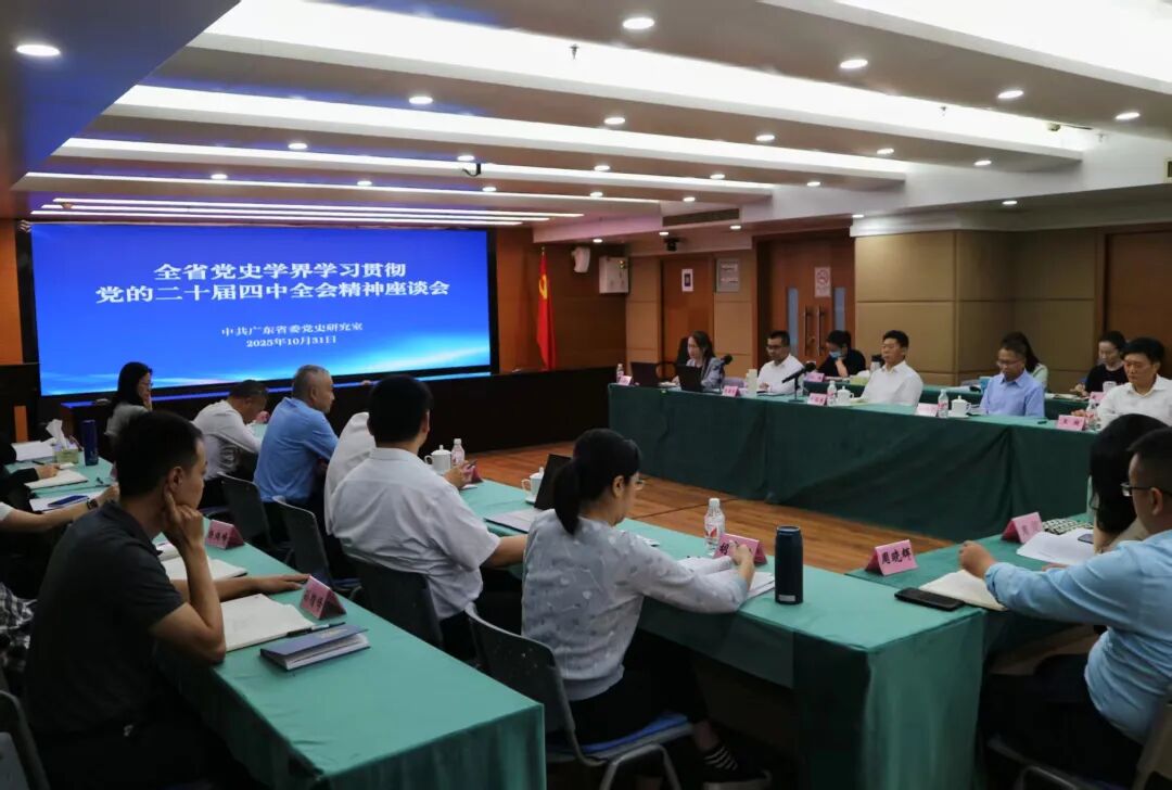 10月31日下午,中共广东省委党史研究室在广州举行全省党史学界学习贯彻党的二十届四中全会精神座谈会。党史学界的7位专家学者交流发言,研究室主任尹德慈出席并讲话,副主任陈春华主持会议。全省有关高校、党校、社科及党史系统的代表参加会议。