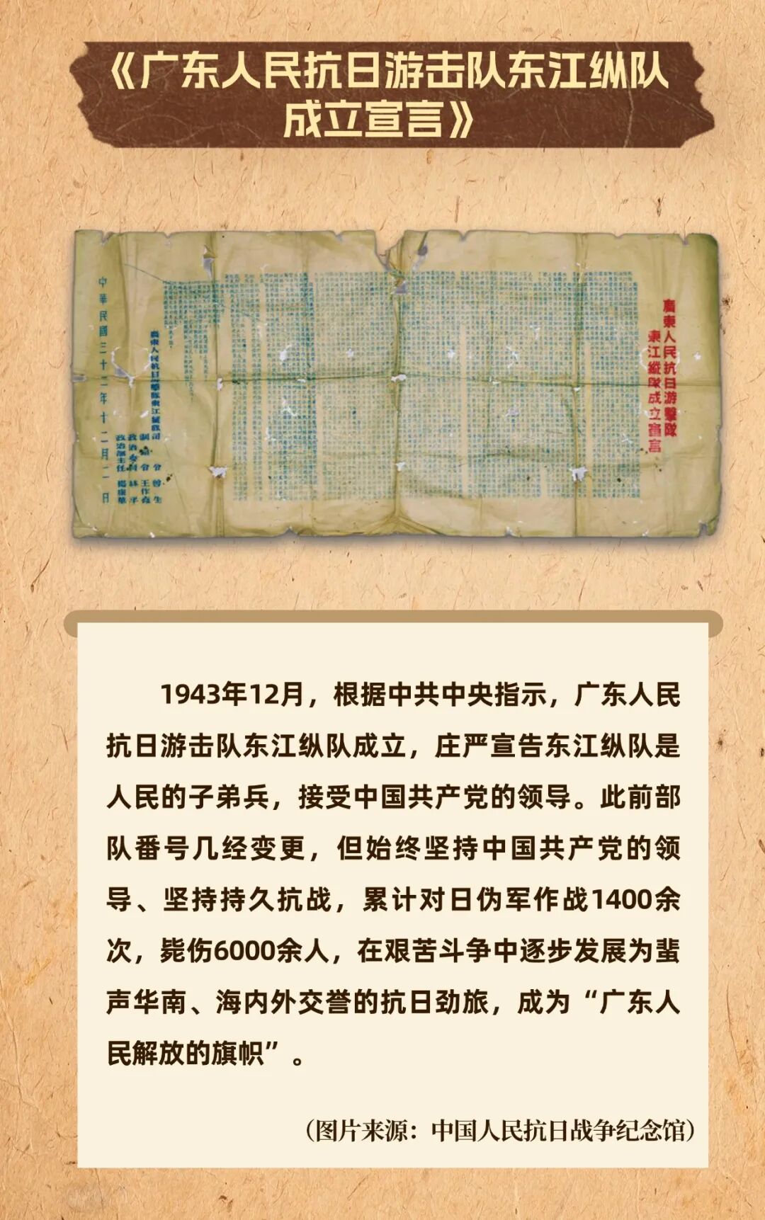 值此全国上下隆重纪念中国人民抗日战争暨世界反法西斯战争胜利80周年之际,“广东党史”微信公众号推出“文物中的南粤抗战烽火”系列海报,铭记华南抗战历史,弘扬伟大抗战精神,深切缅怀为抗战胜利作出牺牲和奉献的英雄先烈。