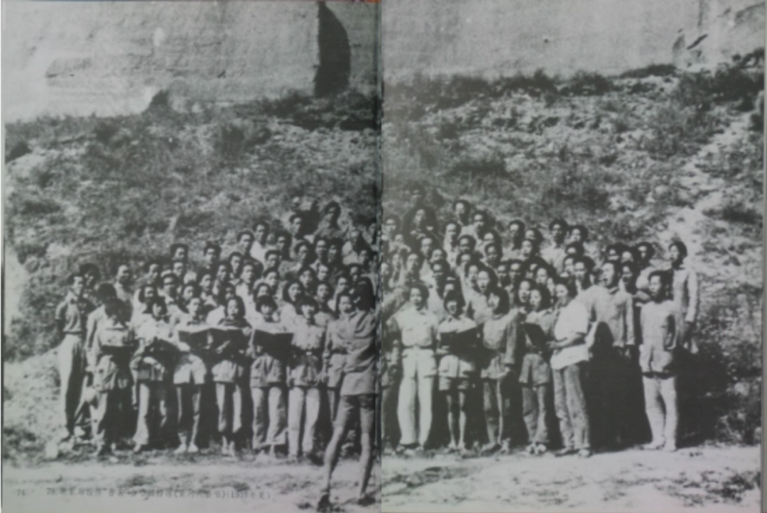 1939年夏,冼星海指挥“鲁艺”合唱团排练《黄河大合唱》(图片来源:《冼星海全集》)