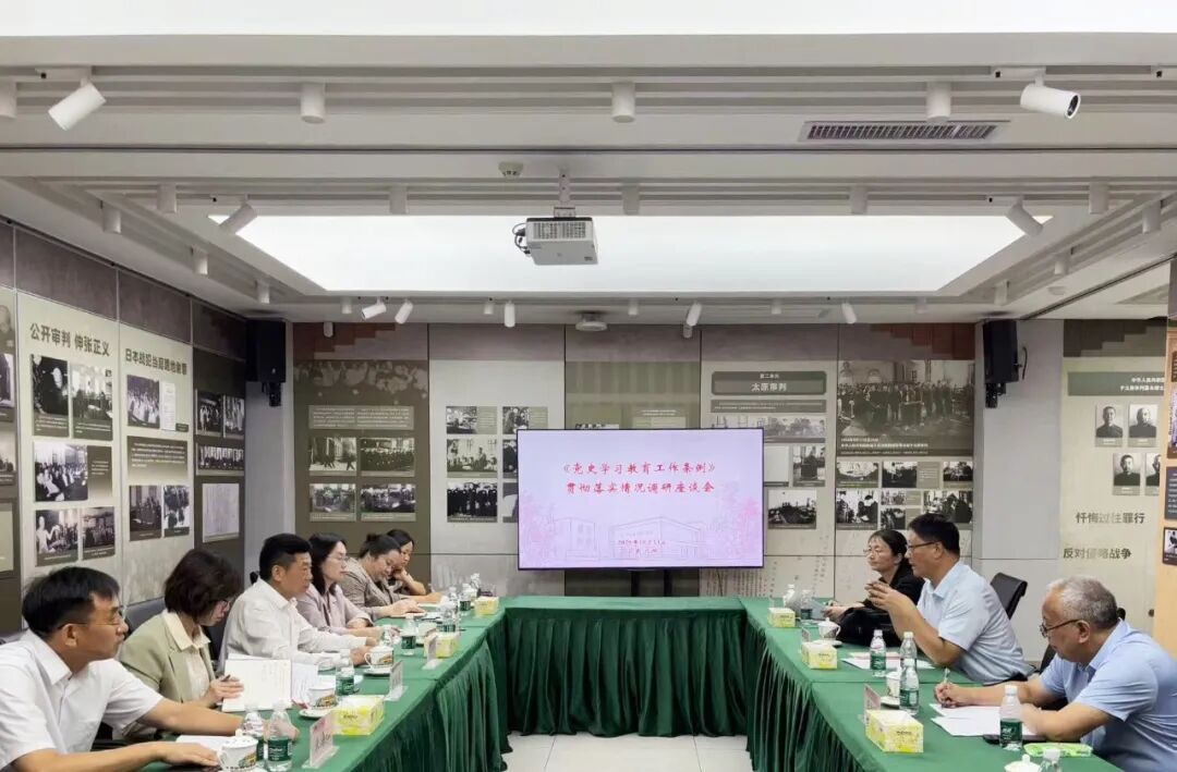 在中共三大会址纪念馆,调研组与省委党史研究室主任尹德慈,中共三大会址纪念馆党支部书记、馆长朱海仁,广东革命历史博物馆党总支书记李岚,毛泽东同志主办农民运动讲习所旧址纪念馆党支部书记黎淑莹等围绕调研主题进行了座谈。与会代表分别介绍了开展有关工作的特色和亮点,交流了组织开展隆重纪念中国人民抗日战争暨世界反法西斯战争胜利80周年活动的情况,探讨了革命历史类纪念设施在贯彻《党史学习教育工作条例》,开展革命传统教育和爱国主义教育、弘扬伟大抗战精神等方面的方法路径。