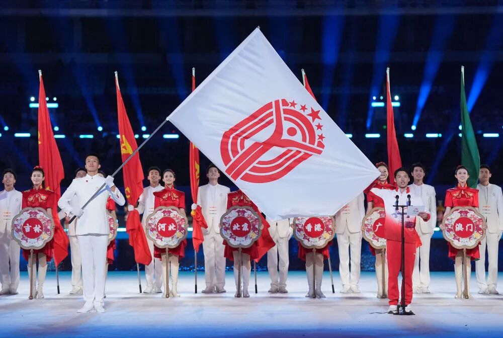 11月9日,运动员代表陈艾森(前右)在开幕式上宣誓。