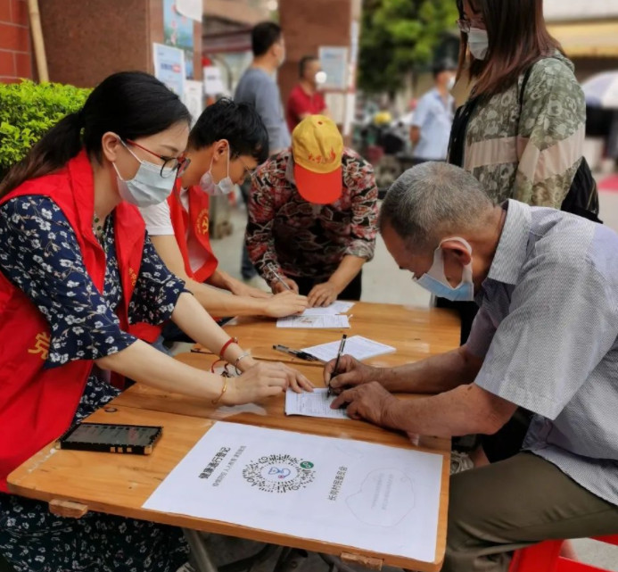 入户登记居民信息、派发居家观察告知书