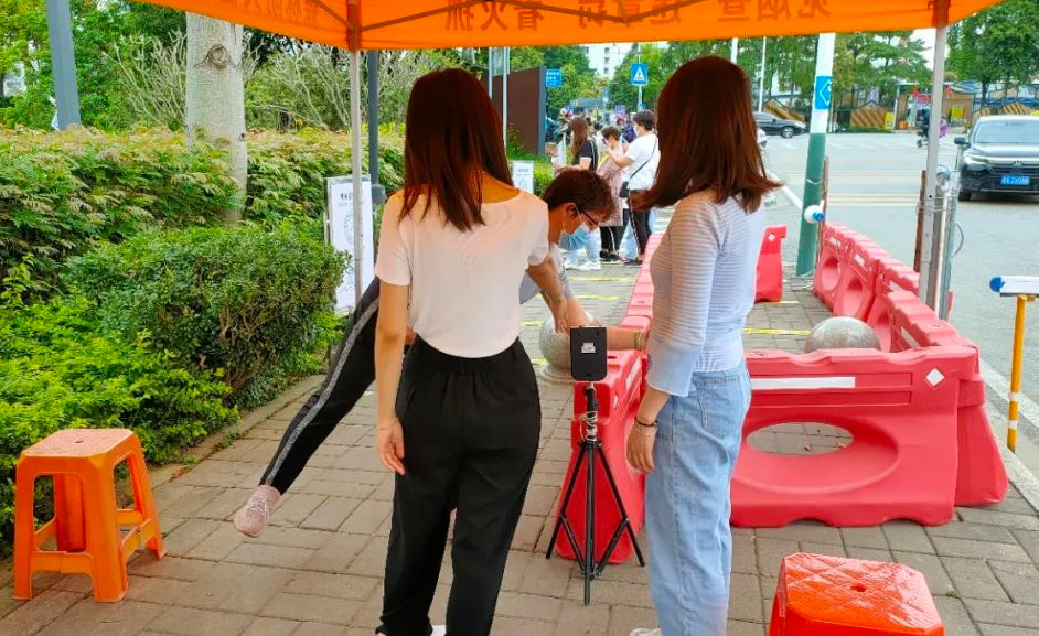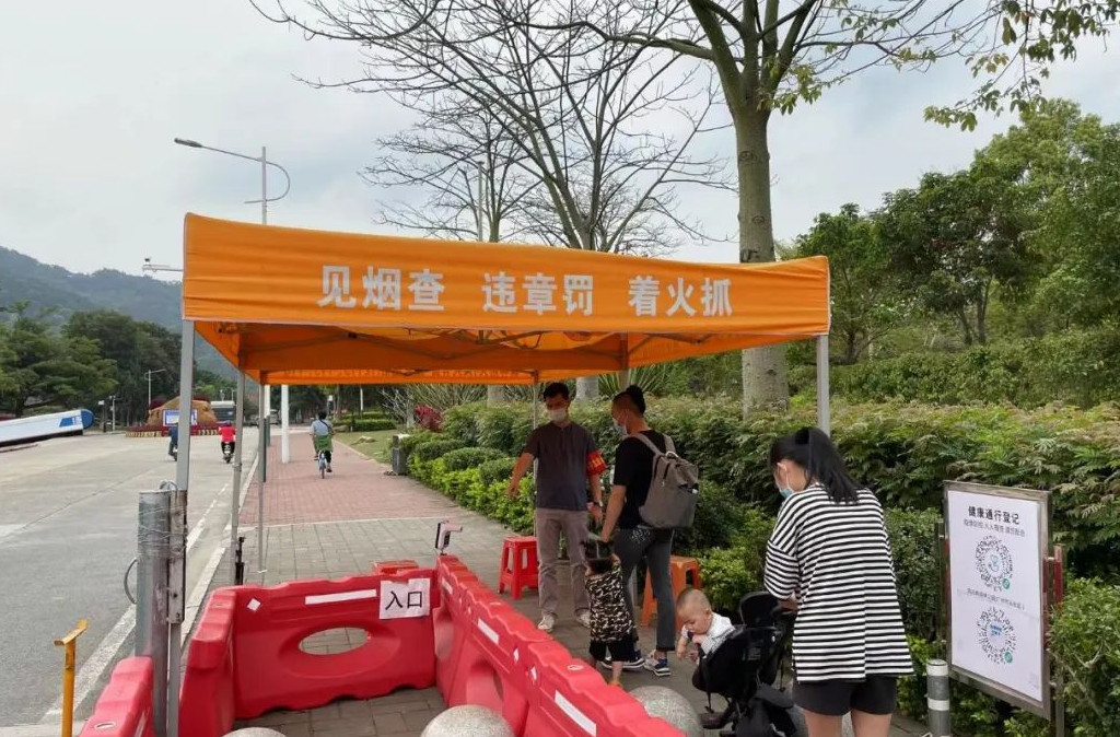 在从化风云岭森林公园的入口处,可以看到这样一些身影,她们戴着红色的志愿袖章,督促进入公园的人员佩戴口罩,扫健康通行码及体温测量,面对一些不会操作智能手机的老人,她们耐心地给予帮助……