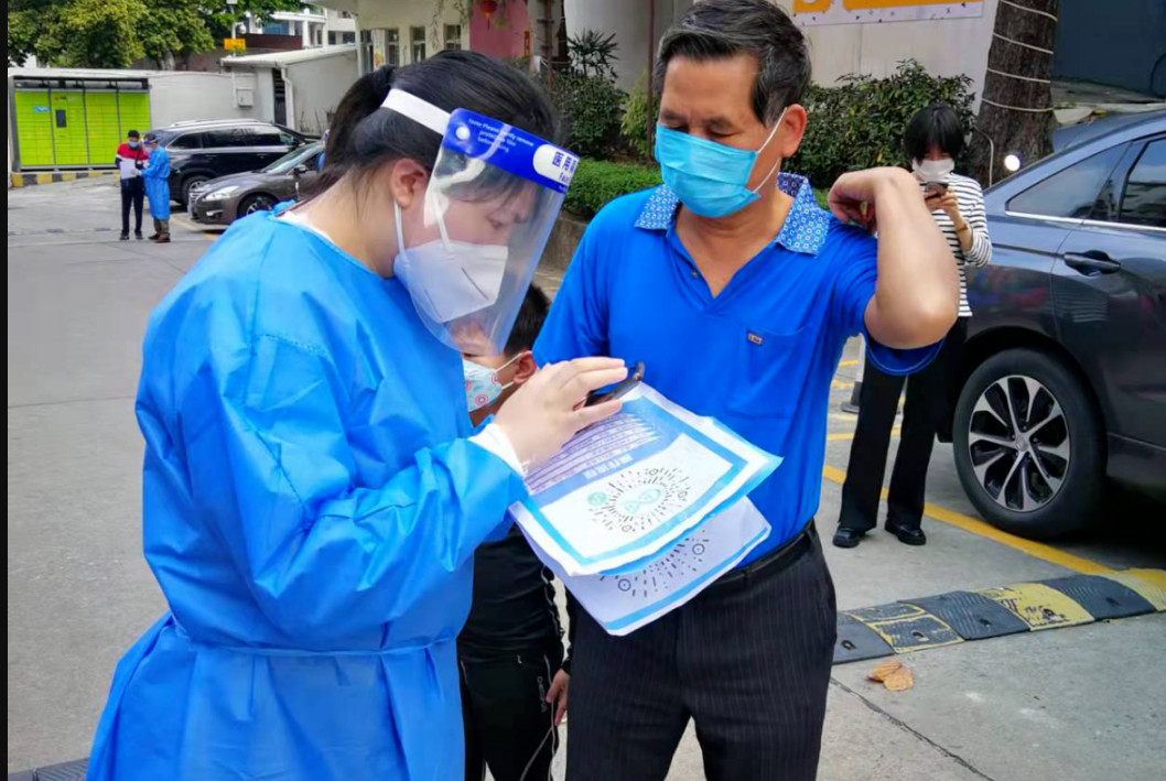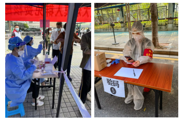 面对疫情,越秀区检察院积极响应区委对防疫工作需求的安排,派出检察干警支援对口街道进行防疫核酸检测工作。有的同志负责给群众扫码认证,他们一遍一遍重复着“您好,请把管给医生,请往前面走。”有的同志负责现场维持秩序,帮助老人、小朋友们操作使用手机登录。有的同志负责“红棉专班”,通宵进行流调工作,跑在疫情前面。虽然穿着防护服戴着面罩,但一句“辛苦了”,让大家更加积极热情地投入到工作中。疫情就是命令,防控就是责任。越秀区检察院用实际行动践行初心使命,为疫情防控工作贡献检察力量。