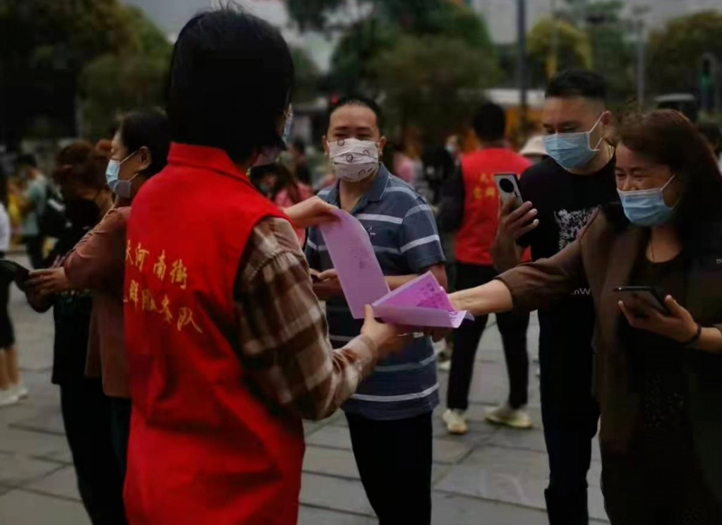 3月15日至16日期间,花都区检察院派出检察干警135人,分成5组、3批次下沉到花都区罗仙村、长岗村、杜鹃社区、桂花社区、兰花社区支援基层疫情防控工作。检察干警通过打电话开展流调排查、信息登记和心理辅导,走访商铺进行防疫知识宣传、引导商户签署疫情防控承诺书并张贴疫情防控行程卡等,进一步提高群众疫情防控意识,推动形成全民防疫合力。
