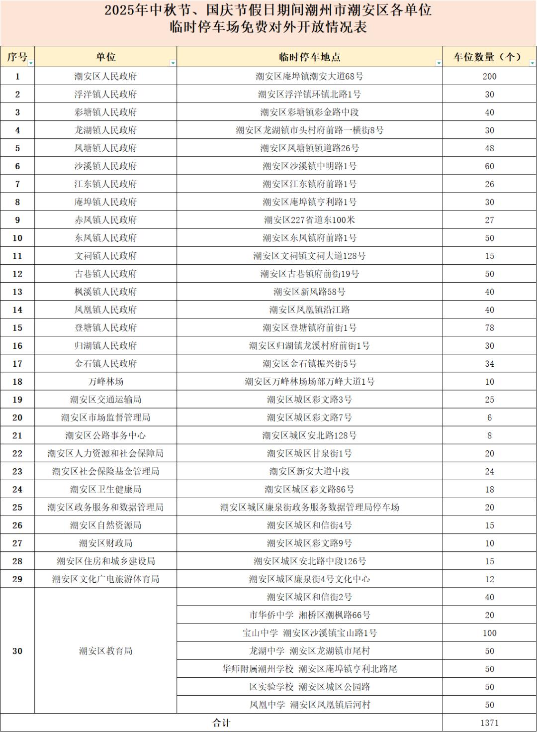 潮州潮安区1371个停车位