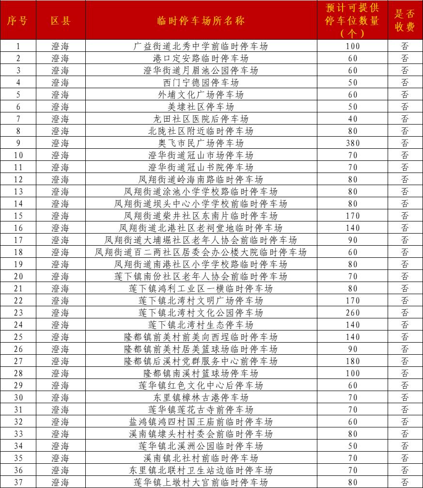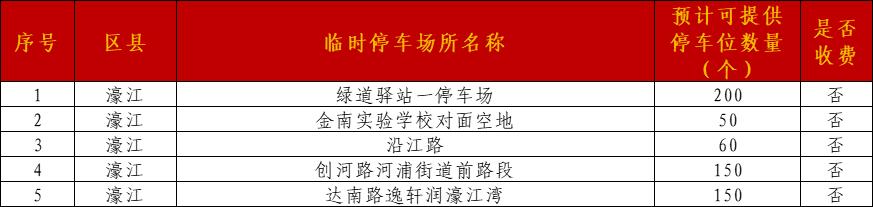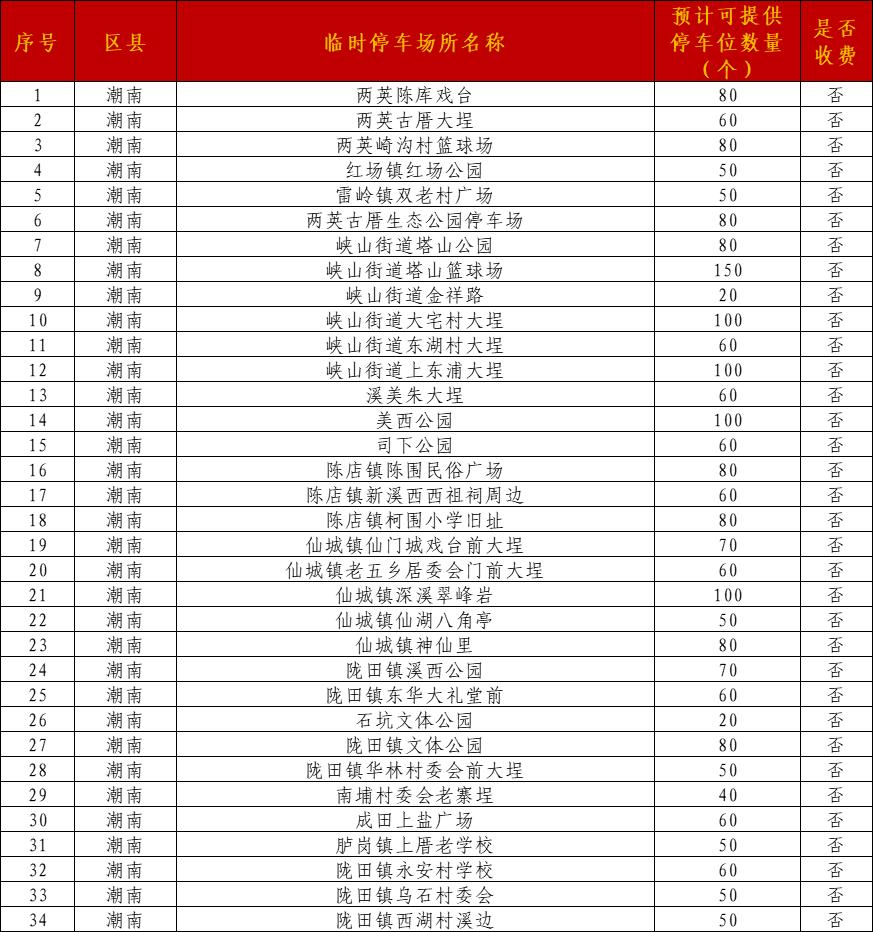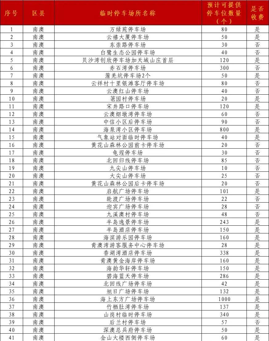 各区县临时停车场如下