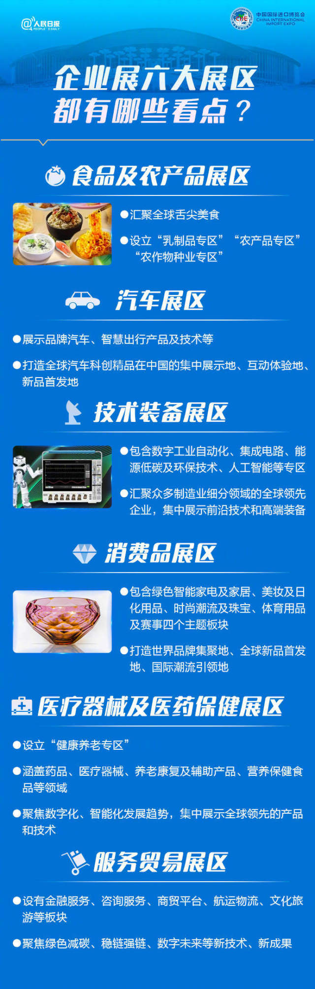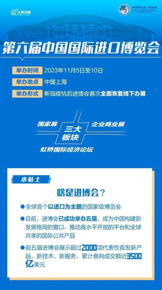 第六届进口博览会将于11月5日至10日在上海举办,预计将迎来154个国家、地区和国际组织的来宾。舌尖美食、智能装备、医疗器械、时尚潮流……多种展品将进行全球首发、亚洲首秀、中国首展。这届进博会有啥不一样?哪些“黑科技”将亮相?戳图了解↓↓