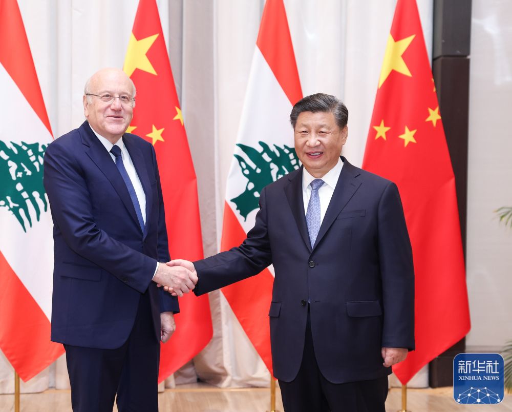 当地时间12月9日晚,国家主席习近平在利雅得会见黎巴嫩总理米卡提。新华社记者 姚大伟 摄