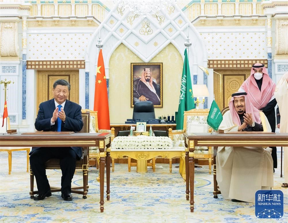 当地时间12月8日下午,国家主席习近平在利雅得王宫会见沙特国王萨勒曼。这是两国元首亲自签署《中华人民共和国和沙特阿拉伯王国全面战略伙伴关系协议》,同意每两年在两国轮流举行一次元首会晤。 新华社记者 黄敬文 摄