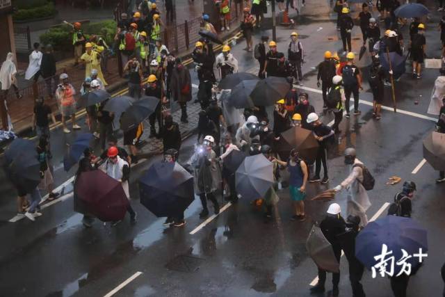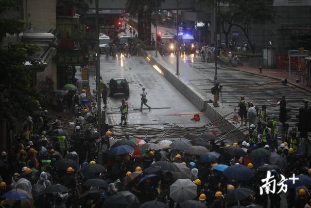 下午17时30分左右,示威者在杨屋道、马头壩道与警方对峙,示威者用铁架、竹枝、水马、雪糕桶设置路障,并拆除路边砖块。示威者用硬物敲击铁架,不断呼喊各种口号,并用言语挑衅警方,制造混乱。