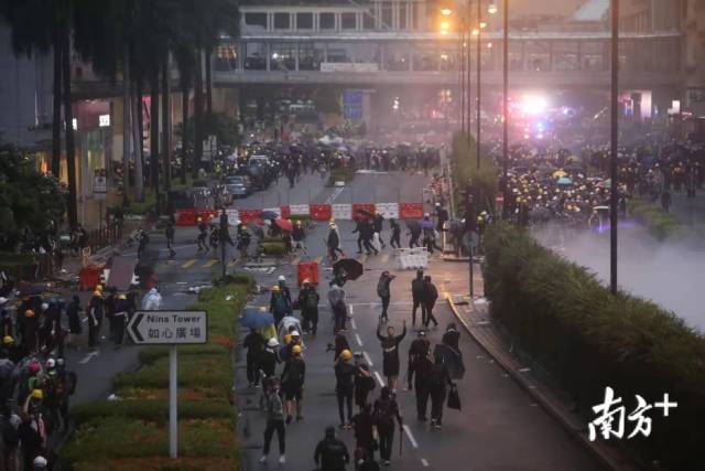 据香港文汇网报道,17时53分,水炮车已近荃湾站。
