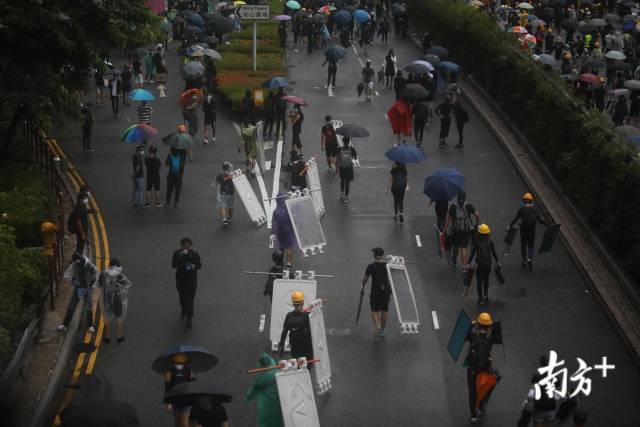 当天下午16时许, 开始有一些黑衣示威者聚集在德士古路,拆除护栏、垃圾桶、路牌等公共物品。