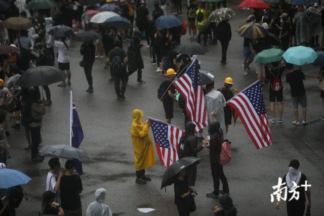8月25日下午,香港示威者在荃湾发起游行示威活动,之后聚集在荃湾公园附近的杨屋道、马头壩道,不肯散去。期间,有示威者举起美国、英国国旗。