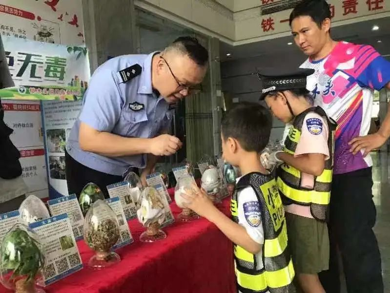 活动中,禁毒民警和禁毒社工带着“小警察”们参观禁毒宣传展,展板上一个个真实鲜活的案例让在场的“小警察”们对于毒品的危害性有了更加深刻的感受和认知。最后禁毒社工通过游戏互动和有奖问答让孩子们在寓教于乐中更加直观地学习禁毒知识。