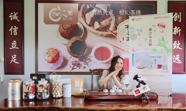 广东鲜特汇平台“小仙女”直播销售新会陈皮、新会柑普茶。