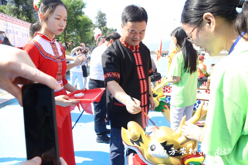 “赛龙舟也是中国传统节日的习俗文化之一,至今已流行了两千多年的历史,赛龙舟更是广东文化的代表,赛龙舟中勇往向前的精神与新中国成立70年来,与我们改革开放40年来永立潮头,敢为人先,激流勇进,砥砺前行的精神相契合。”连南县人民政府县长唐金文希望所有参赛队伍能在体验丰收喜悦的同时,保持不断奋斗的精神。