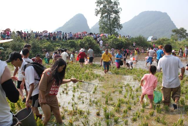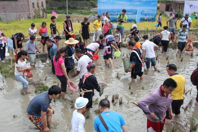 届时,万人将争相扑进稻田中捕抓肥美的鲜鱼,以沿陂桥附近的稻田为中心的一带瞬间变身为一个巨大的水上乐园,稻田外的田基上也充满了围观打气的群众,缤纷的抓鱼大战一触即发,众人纵享捕抓的乐趣!