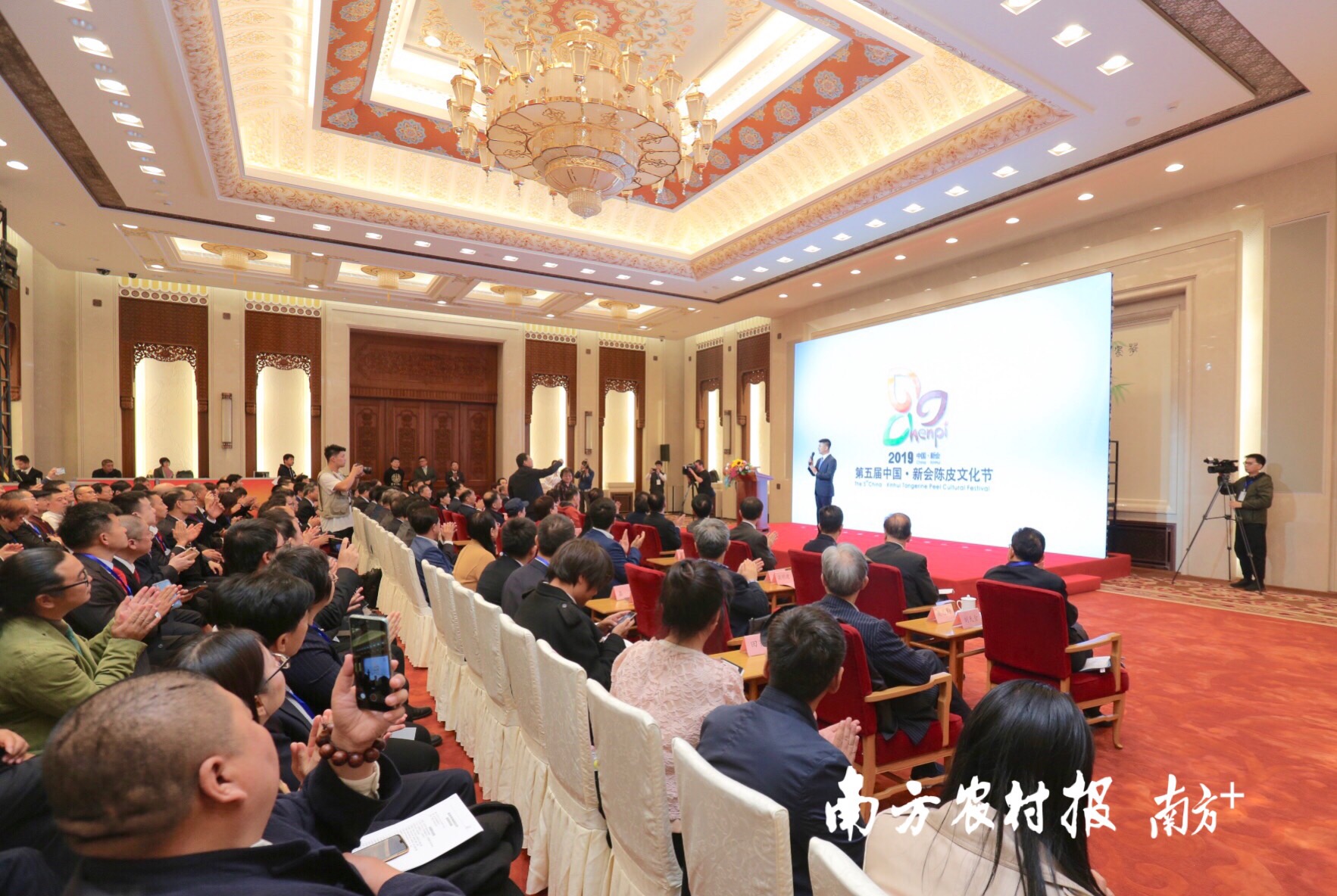 新会区委副书记、区长梁明建在会上介绍了新会陈皮发展最新情况。近年来,新会区委、区政府高度重视陈皮产业发展,积极弘扬陈皮文化,把做大做强陈皮产业作为乡村振兴、推进高质量发展的重要抓手,新会陈皮产业发展质量和品牌效应不断提升。据介绍,新会柑、新会陈皮双双入选“国家地理标志保护产品”,是全国仅有的一果双标志产品。2008年后,新会区先后获授“两乡一基地”称号,即中国陈皮之乡、中国陈皮道地药材产业之乡、中国和药文化示范基地。2018年,“新会陈皮”品牌位列全国地理标志产品第41位,价值达89.1亿元。